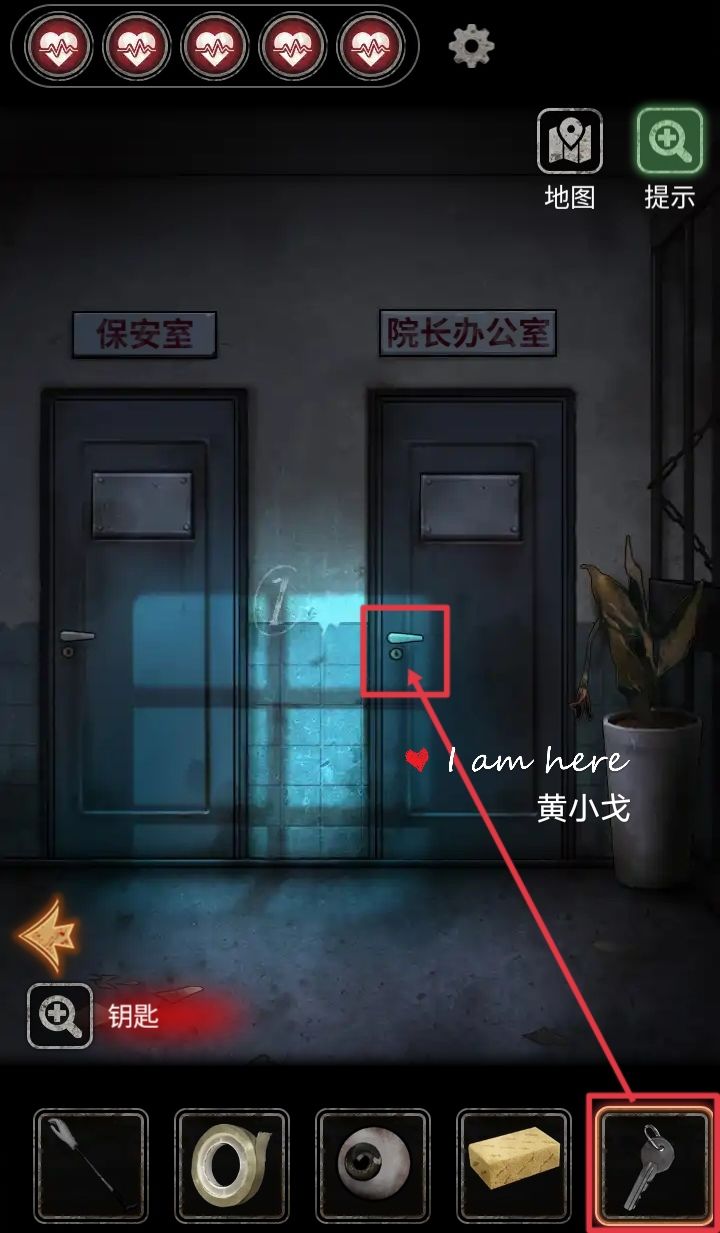30.(一楼走廊)用【钥匙】打开院长办公室的门
