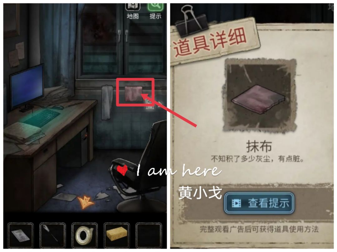 33.(院长办公室-电脑)点击获取挂在杆子上的【抹布】