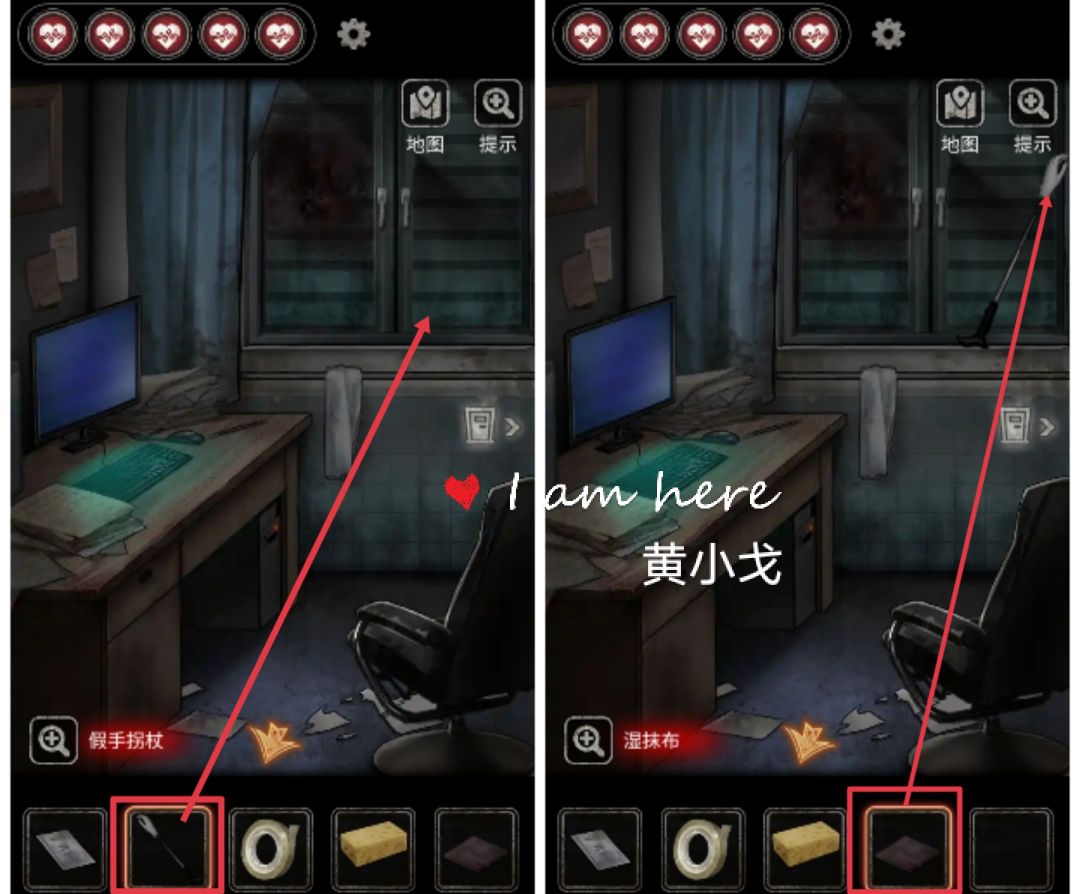 35.(院长办公室-电脑)把【假手拐杖】放到窗户上,放入【湿抹布】