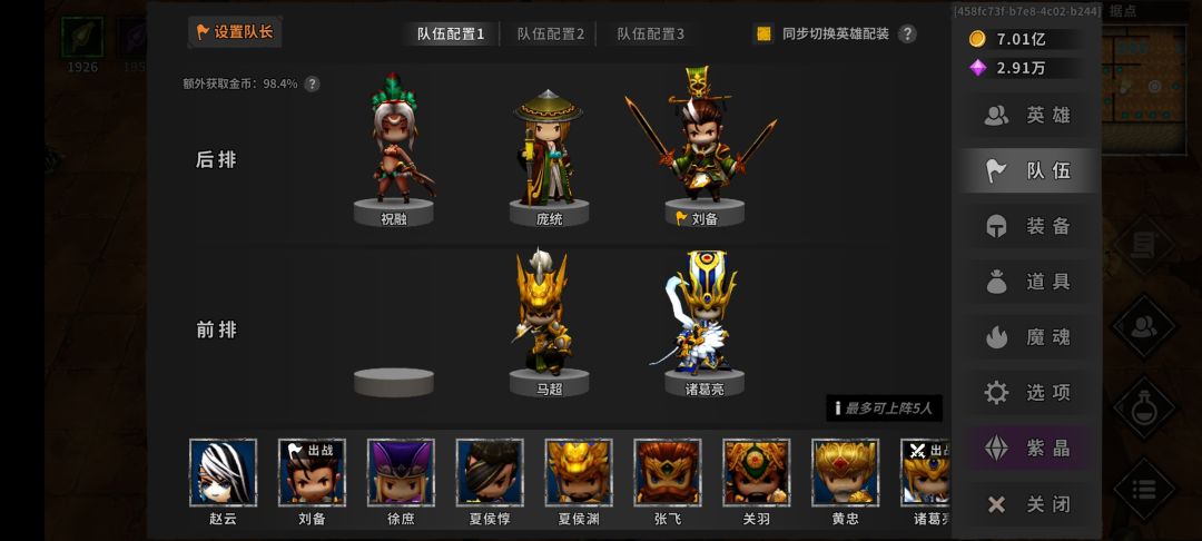 0.24马超 0.26祝融 0.28诸葛 0.30马超 0.32刘备 0.34祝融 0.36庞统,己方7动为一轮,肯定无法跟辅助周瑜比,不过胜在安逸、稳定。当然诸葛也可以做异常套不过没有融化所以我也没做...140层抵抗太高叠那么3-5个异常效果没有血魔稳。