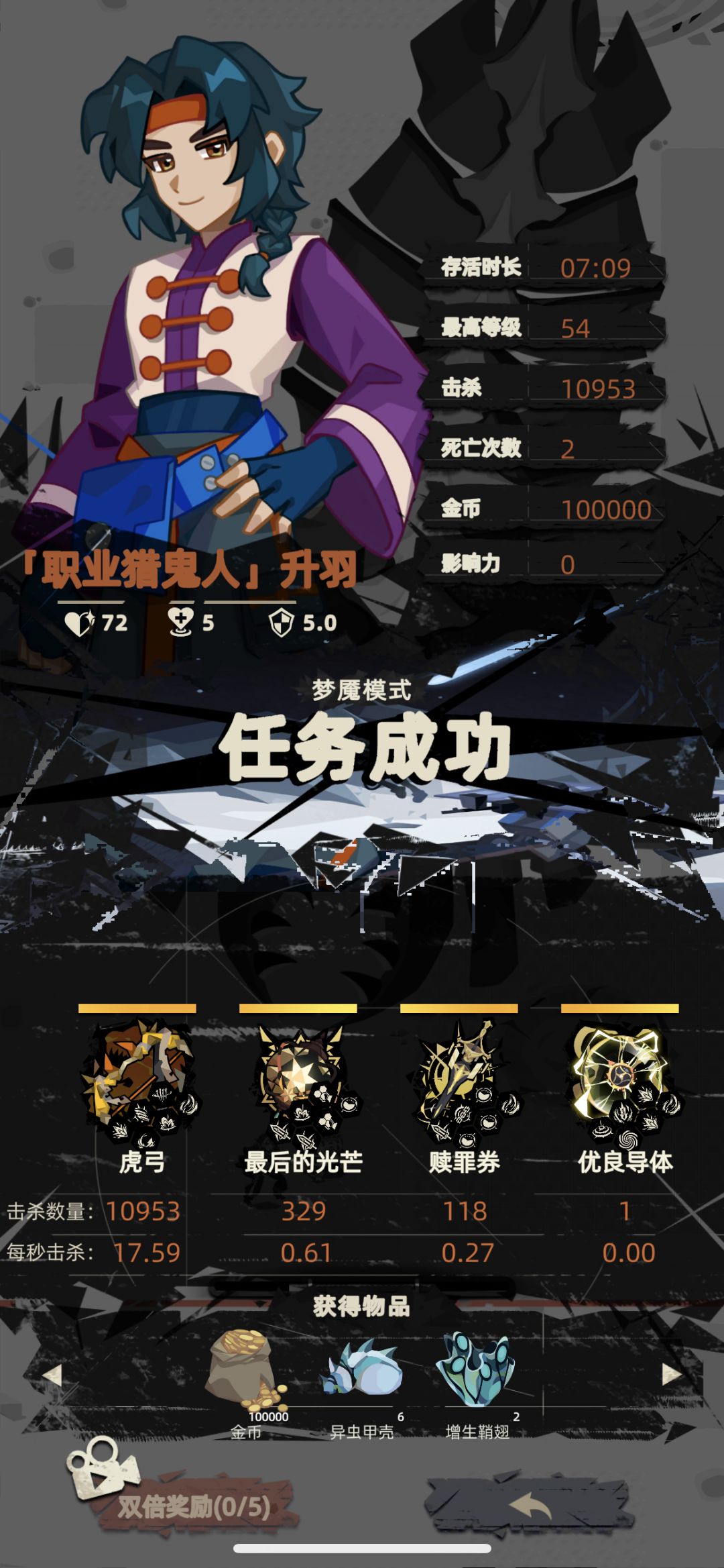5.运气好能到4.3w以上等boss出来直接贴脸输出,结算后就有5w