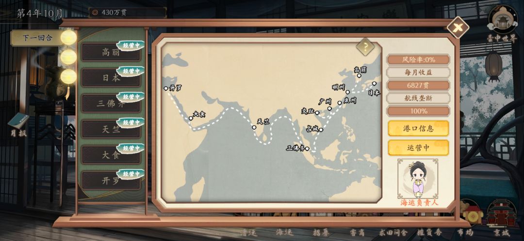 然后最头戏是海运,招募出了观星师和八面玲珑,观星师来开航线,八面玲珑来坐镇经营。