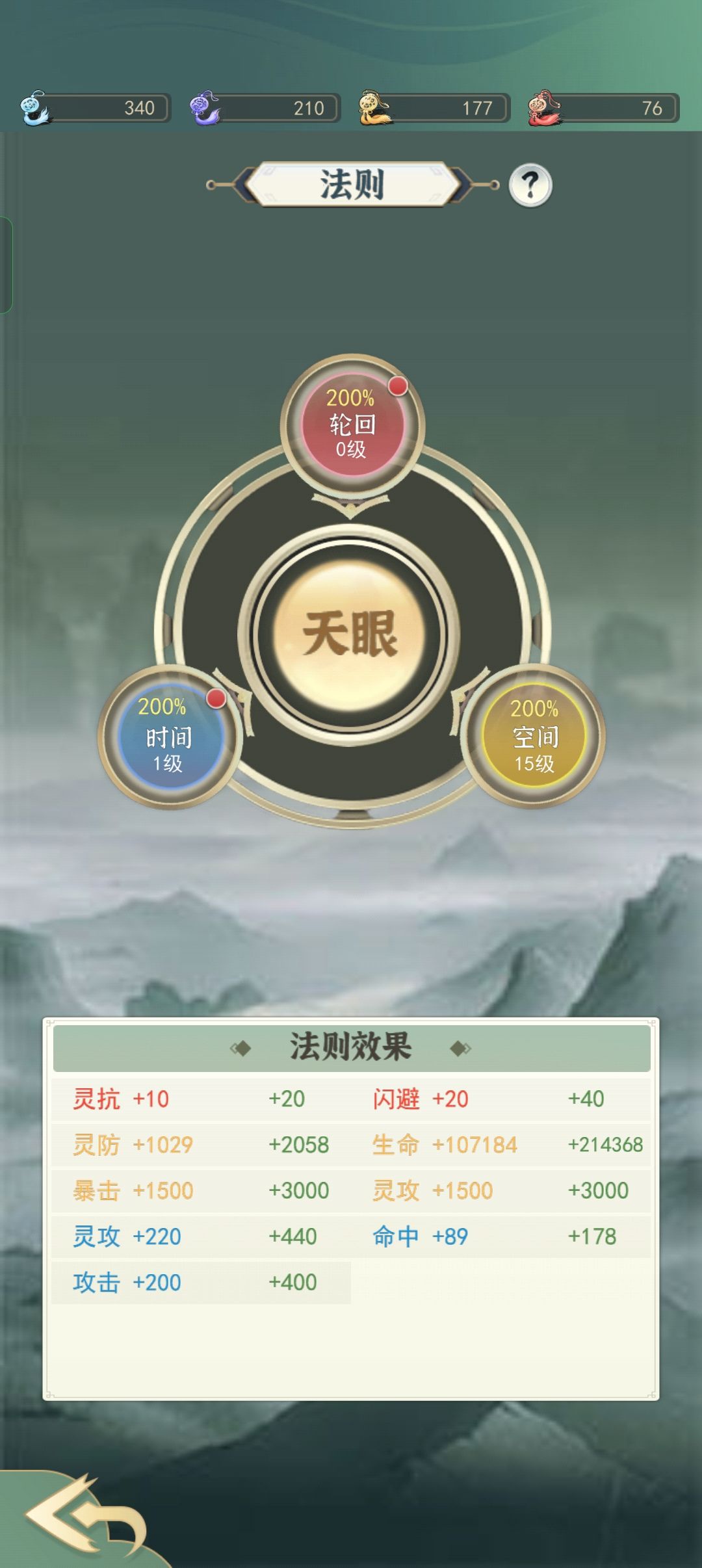 法则优先把天眼点到200%,然后就一直把空间法则点到20级就行了,再点轮回时间