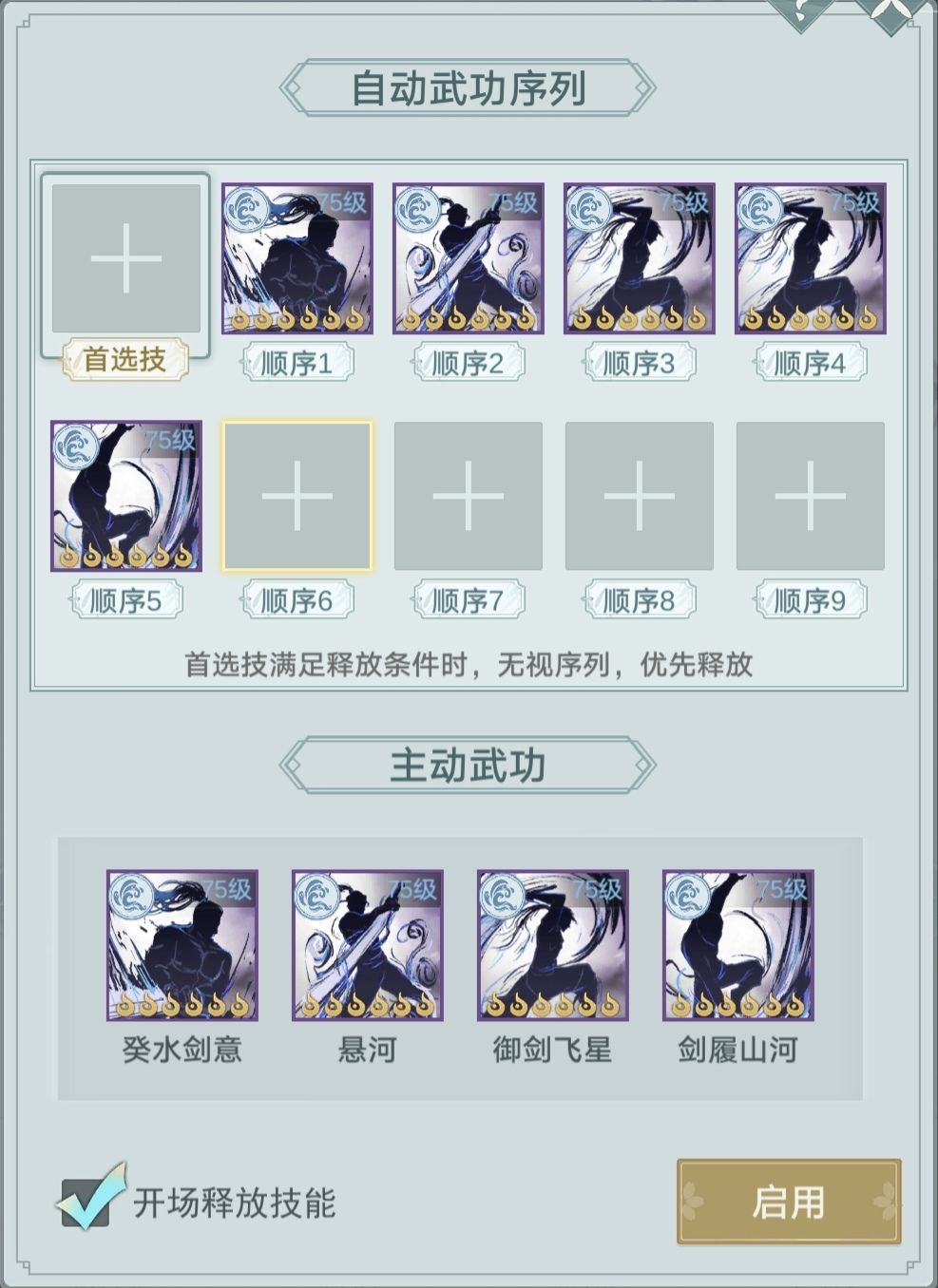 节奏是第一个四息结束,六开+四点剑意共10点,癸悬余4,御剑三连触发癸水回气打完剑意,下一个四息开悬河,第三个四息卡住癸水buff,剑履出手