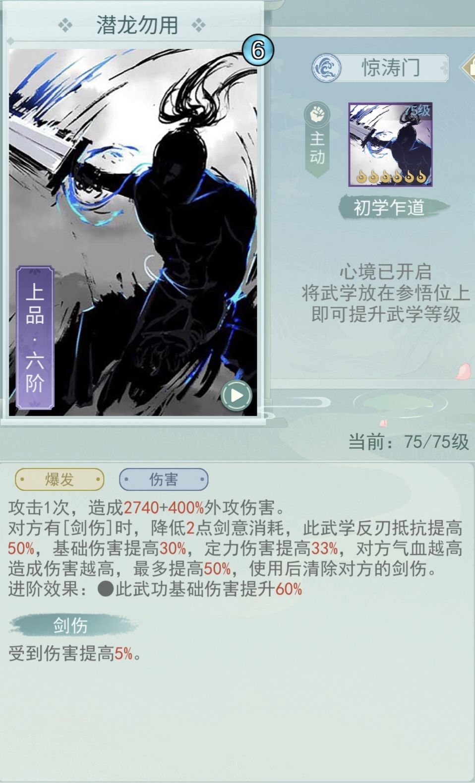 潜龙勿用:惊涛门最吓人武学,不同练度使用存在云泥之别,绑定斩云