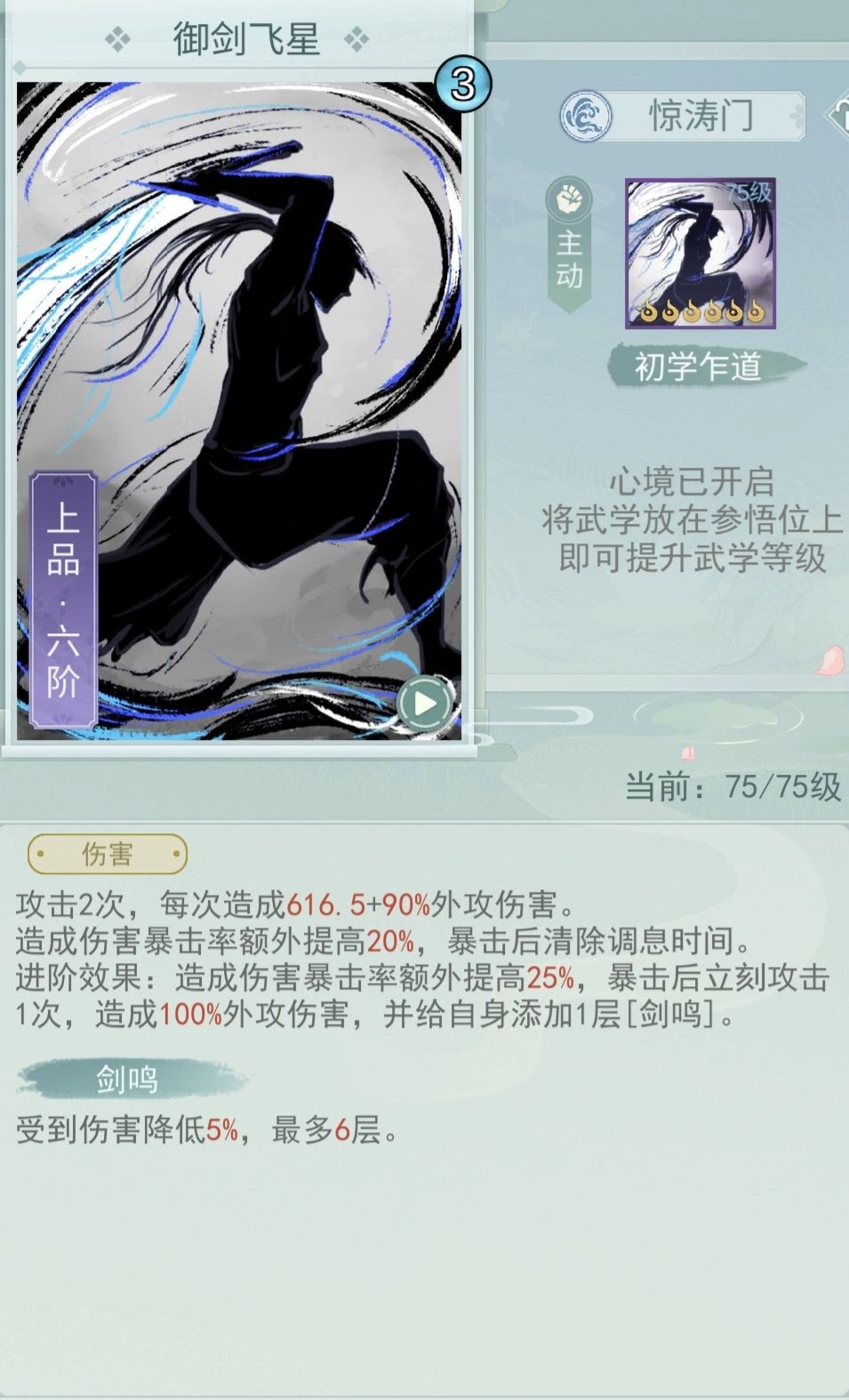 5、剑印只能附加单次惊涛武学伤害,即御剑两下只有第一下享受剑印;