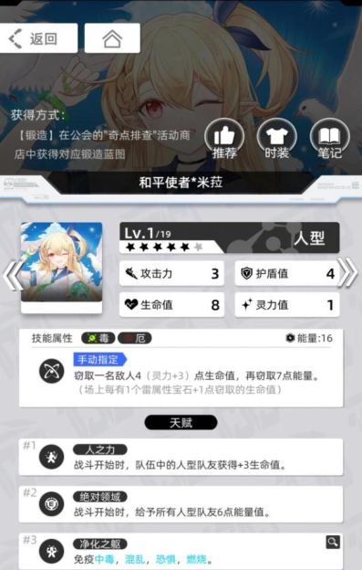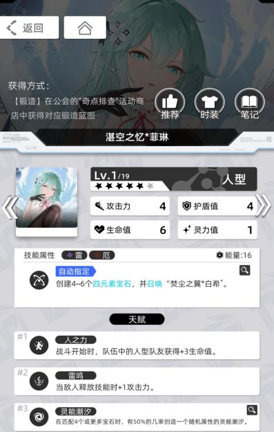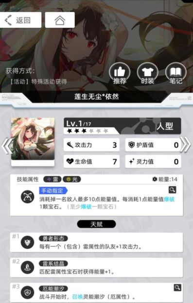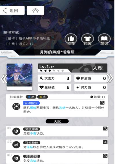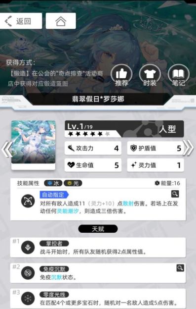 拥有足够的资源后,可以使用翡翠假日*罗莎娜(5星冰光)、和平使者*米拉(5星毒厄)、莲生无尘*依然(3星雷光)、湛空之忆*菲林(5星雷厄)等来搭配,增加队伍的容错率、启动速度、输出能力。