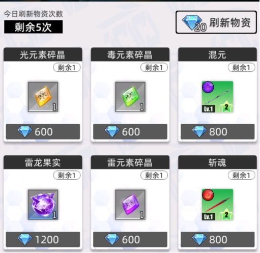这里每天可刷新5次,急需的情况下可以刷新购买,但并不建议。