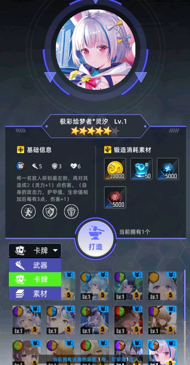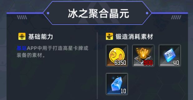 注意事项:卡牌打造所需的属性晶元是与他的属性对应的,所以如果你打算兑换某张卡牌的图纸,记得先看看自己有没有足够的资源打造,避免资源浪费。