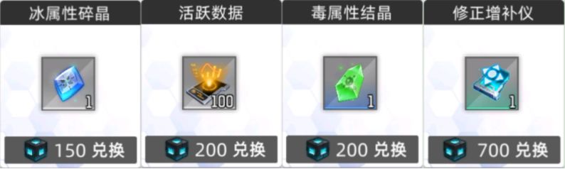 活跃数据:在能确保完全通关的情况下,推荐将虚数魔方兑换成修正增补仪,使资源数量达到最大化。