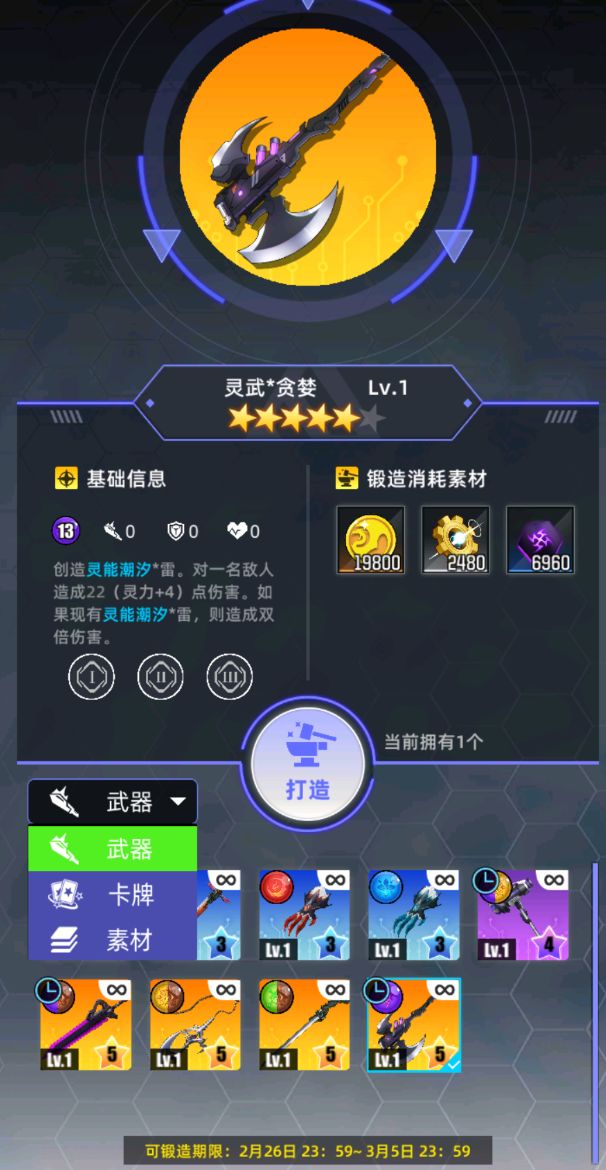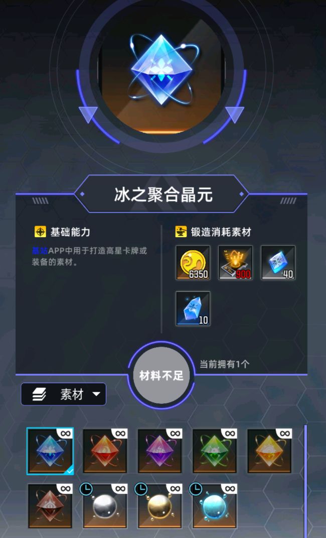在这里打造的素材分为2种,一种是属性晶元,用于锻造卡牌;一种是活化因子,用于橙武升级开启调谐天赋。