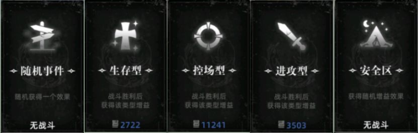 不选随机事件,前两大关优先控场(爆破宝石、护盾、充能),第三关优先生存(优先硬化皮肤,其次灵力屏障,不用选治疗),尽量不选进攻型。