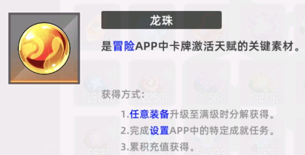 龙珠:该物品主要获得方式有:1、武器升至20级后分解获得(不推荐);2、每日任务——兑换所可每月兑换一颗;3、公会——超弦活动:个人奖励第11阶一颗;全体奖励第11阶一颗;排行榜个人积分第2名一颗。