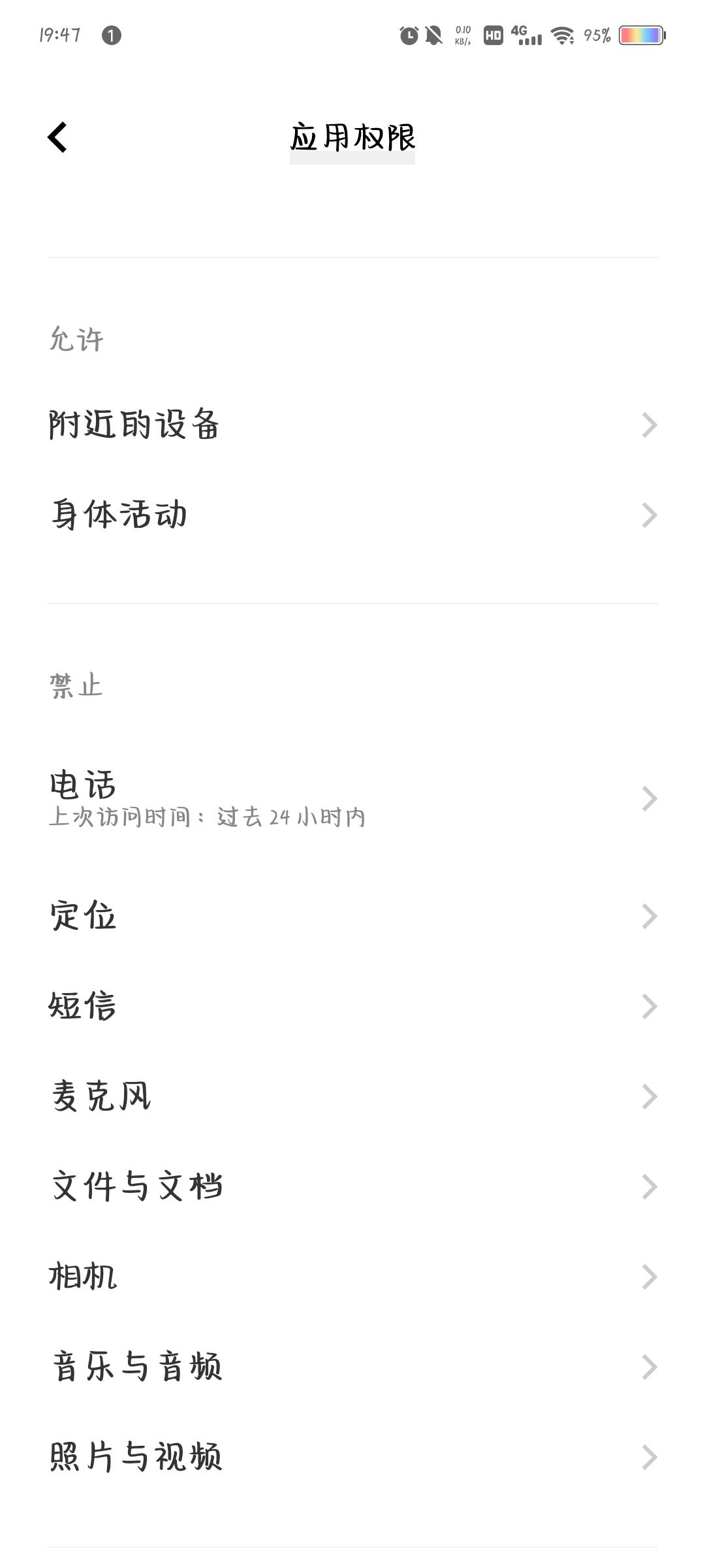 闲来无事逛了下论坛,没想到被告知有那么多黑料,但我在玩的过程中倒是没遇到过论坛中说的问题。然后我就去查了一下,原先我的电话权限是开着的,有点害怕就给关了(这张图是昨晚截的)。看到有人说别的软件也会访问,于是我刚刚又去看了一下(尤其我这人经常下载广告游戏),没有发现别的软件有访问过我。