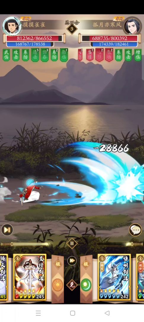 2.改版后的倚天剑的力竭在三个武学以后才有,我们这套基本上主打一轮解决战斗,不需要解力竭。如果一轮打不死力竭的位置在五虎那里,这是个控制卡不需要解力竭打输出