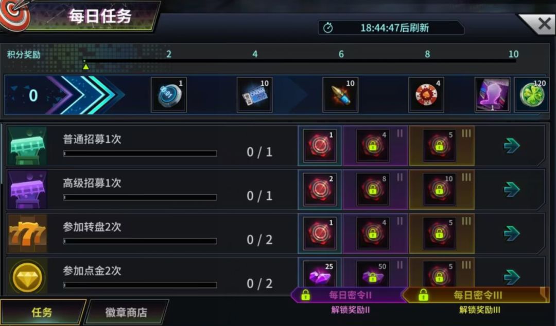 各位探长可通过在边城警视厅完成不同颜色次数任务来领取档位奖励。子弹可用于刷新任务,警徽可用于重置任务。不同任务对英雄的阵营,品级和星级均有不同要求。任务可进行锁定,被锁定的任务不能手动刷新,但每隔24小时会自动刷新。