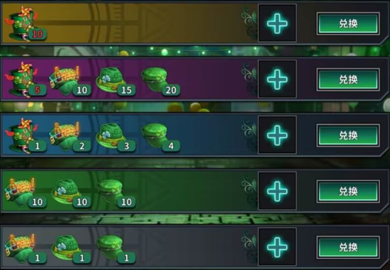 1.兑换分为6个档次,玩家可以用对应的帽子兑换自己想要的物品奖励