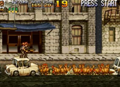 (图:《合金弹头4》中的这个养鸡场景,老玩家应该很熟悉)