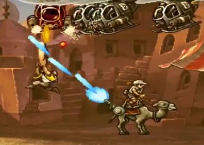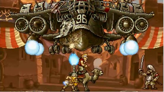 《合金弹头2》中加入了骆驼载具,仗着自己的不死之身不但能横冲直撞还能上蹿下跳,给了玩家一个极大的惊喜。