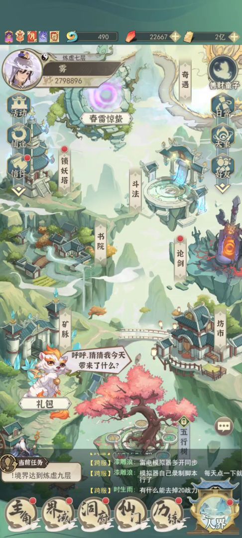 进游戏第一步就是把群里的礼包码领了,大概2.8万仙玉。这个仙玉很重要,不要乱花,前期做任务一路到元婴,注意金丹到元婴会卡一段时间锻体,这个时候你可以手动刷几次次元,练最高级的丹,或者你继续开后边的几个小号,第一天基本上能化神,如果你不想那么肝就放一天,第二天化神也不影响什么。