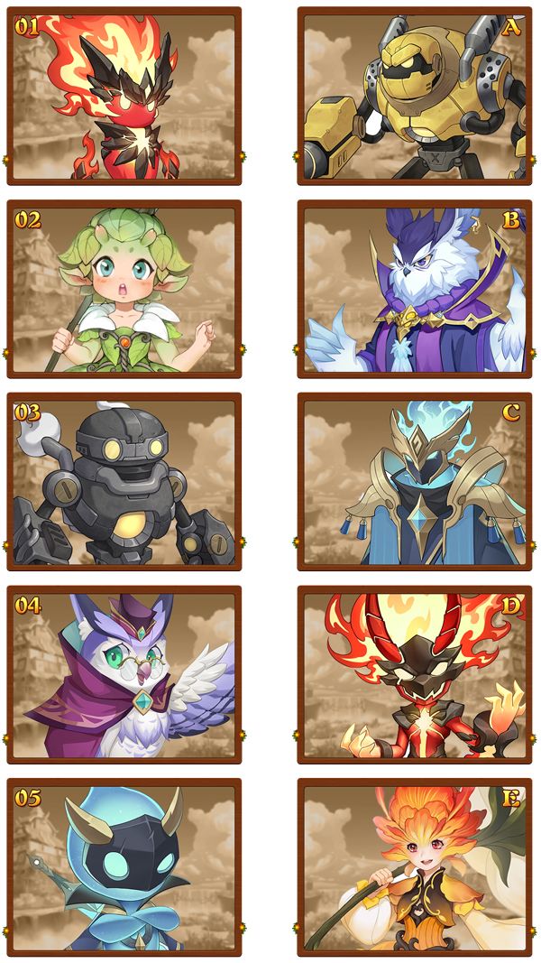 如图,下图左列标有01~05的图片是宠物进化前的形态,右列标有A~E的图片是他们进化后的样子。