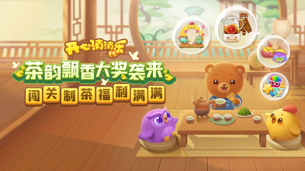 活动排行榜将根据茶艺值排名,全国日榜1-10名可获得开心消消乐联名煮茶器以及实物周边,11-200名将随机抽10位小村民获得实物周边。