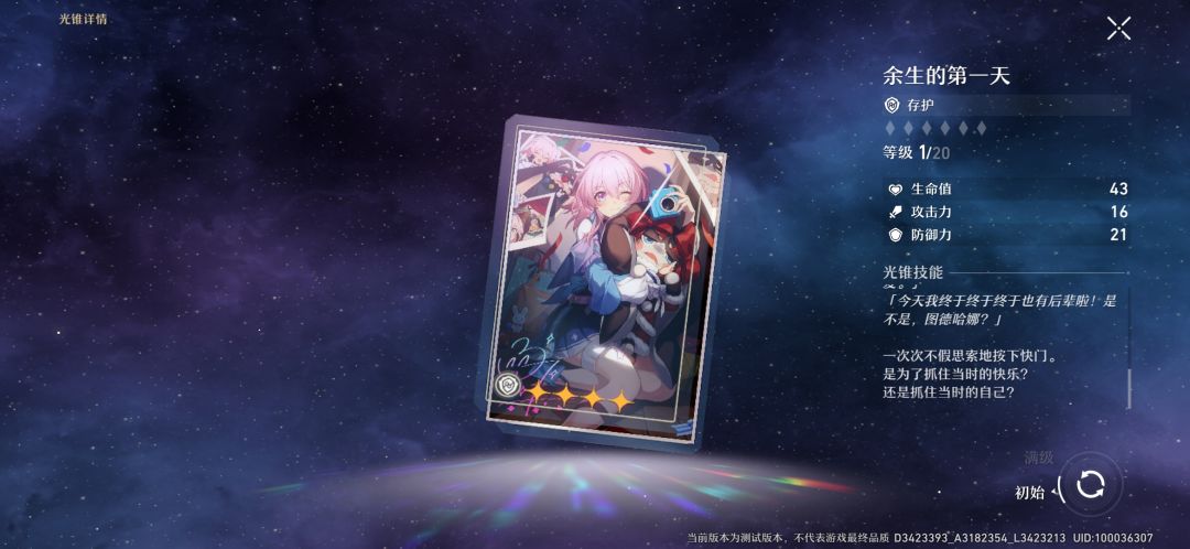 这是三月七光锥——余生的第一天中的文本。看样子,小三月把自己从六相冰里劫后余生出来的第一天作为了自己的生日。同样,三月七的名字也是来自于这一天。