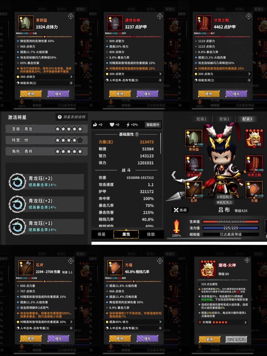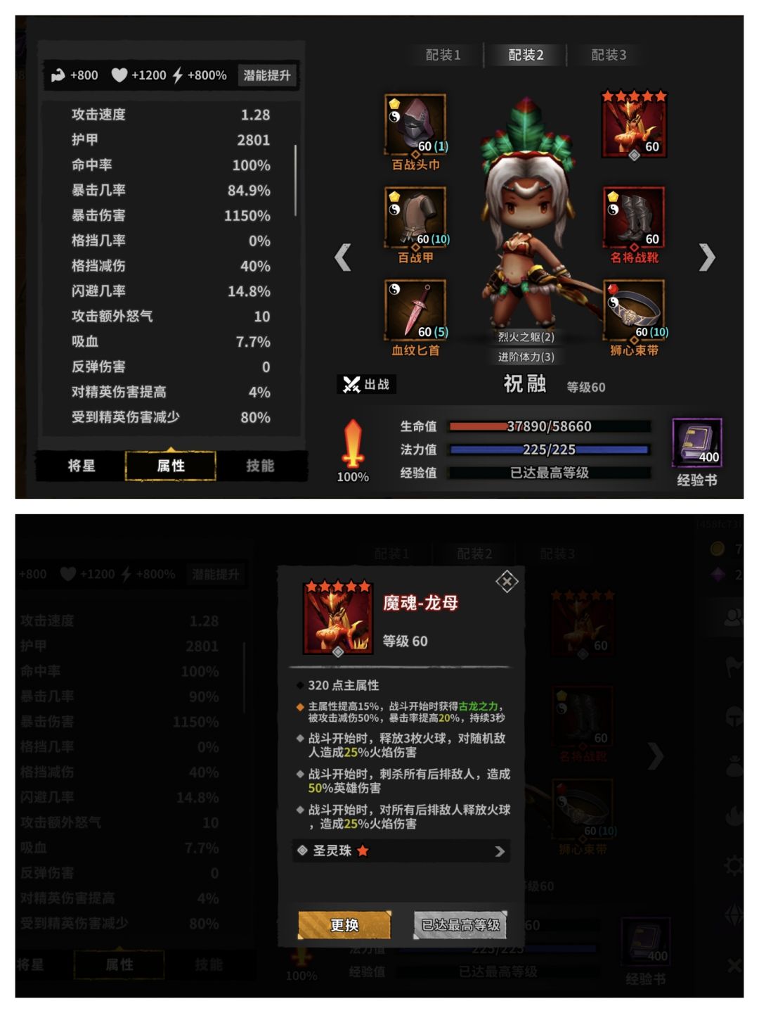 注:如果是主龙母百暴玩法副手需要暴击回怒5,小怪阵容祝融需要3狂怒,其他位置不变。