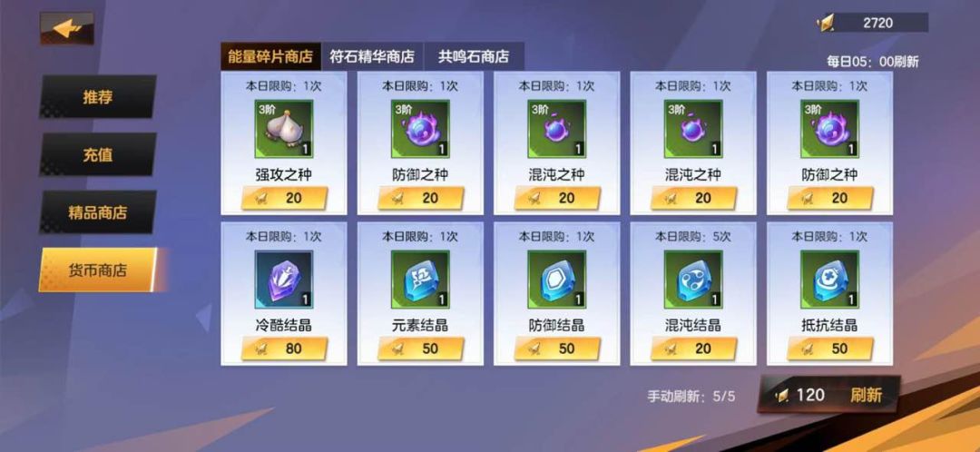 1.能量碎片商店中可购买种子