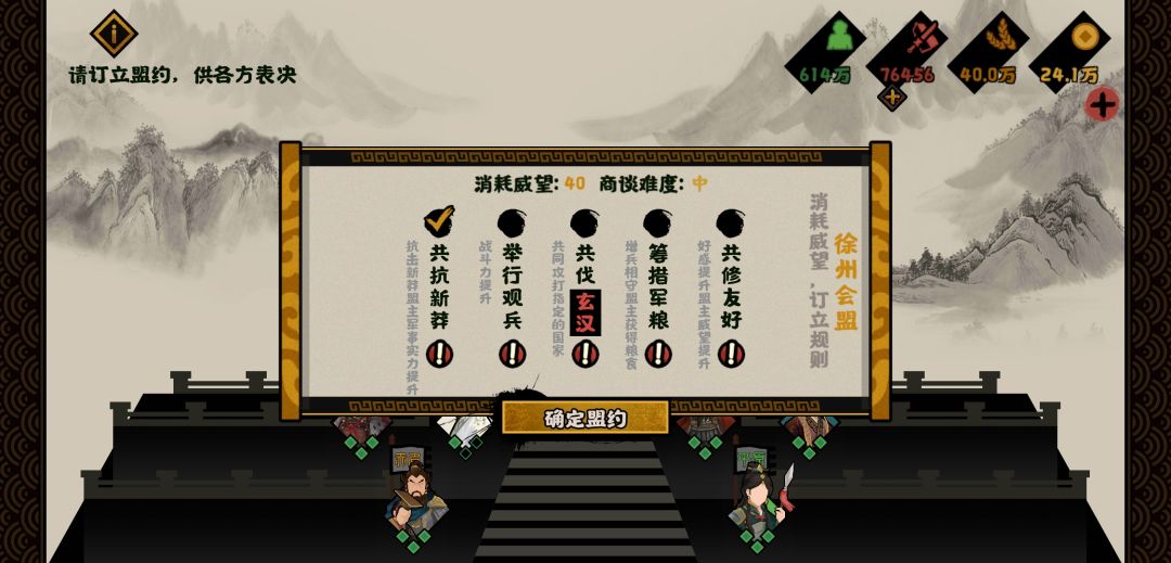 除去大国势力外,义军势力则需要通过以战养战的方式不断状大自身,广交盟友,快速点出关键政策。而豪强和宗亲势力则是需要通过并小国围大国的思路慢慢发展起来。