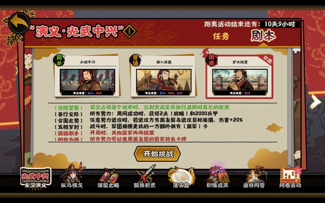 【大神有妙招】本次邀请到作者团人气作者——浮渏,为王上们带来又一期保姆级攻略。这一次,他准备讲讲如何挑战《东汉演义》,如果你对于本次演义遇到卡点和困难,看这期就对了!