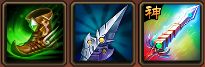 开局先出缩地鞋,之后合出大专属,大招毕竟是个主要输出。之后出小刷新和金龙玉玺补足伤害!