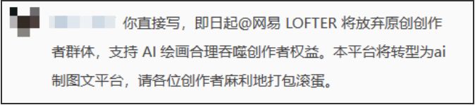 公告之下,你会看到绝大多数LOF用户都直指「老福鸽画画机」的源头「AI绘画」,认为一个以“同人创作”为核心的平台上架AI创作工具,是对二创作者“不敬”,甚至可以说是“蔑视”。