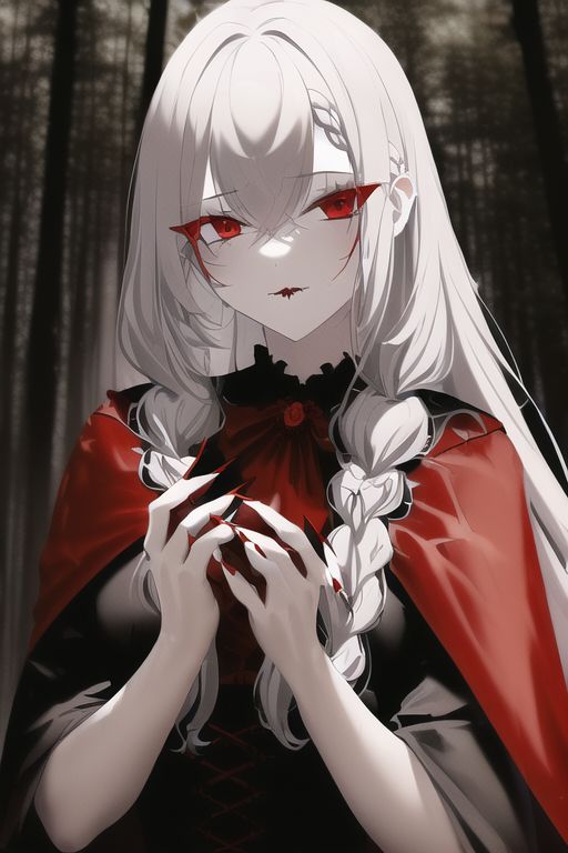 当小红帽恢复记忆时,她看到的是化为火海的家,听到的是镇民们愤怒的咆哮。来不及细想发生了什么,求生的本能让她展开了那对巨大的、猩红色的翅膀,化作一阵腥风遁入了昏暗无边的夜空。