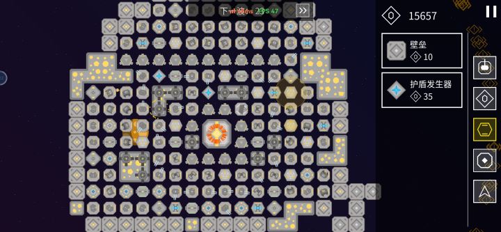 就前几关用了机枪,后面舍弃,中间一圈无人机,第二圈导弹和激光超频适量放,维修机器人全覆盖,第三圈火箭同上,第四圈脉冲同上外加隔几个放护盾,要多。第五圈同上零散脉冲加维修护盾和拦截,拦截全覆盖最好,最后一圈围墙。