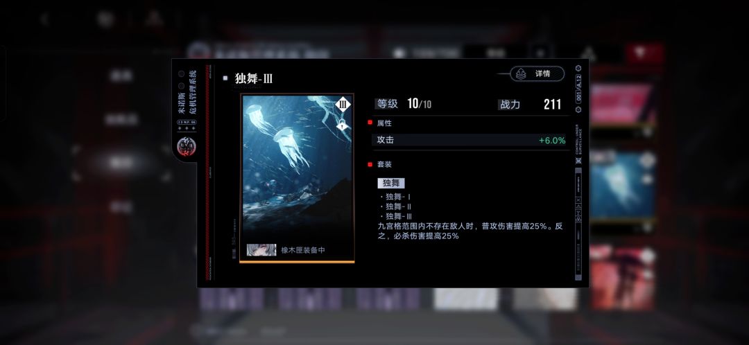 忘却深处:大招每秒增加伤害,但使用大招后移除加成,适用于整场只用很少技能大招收尾的某些定位的角色,例如法队里主c蕾或维或蛇而让10娜当充能拐的时候,可以在后排装个忘却深处+希望让她慢慢攒个大招出来轰一炮补伤害,也可以给一些技能打伤害的副c,不吃满忘却的加成影响也不大,因为忘却的三号位词条就加技能伤害提高