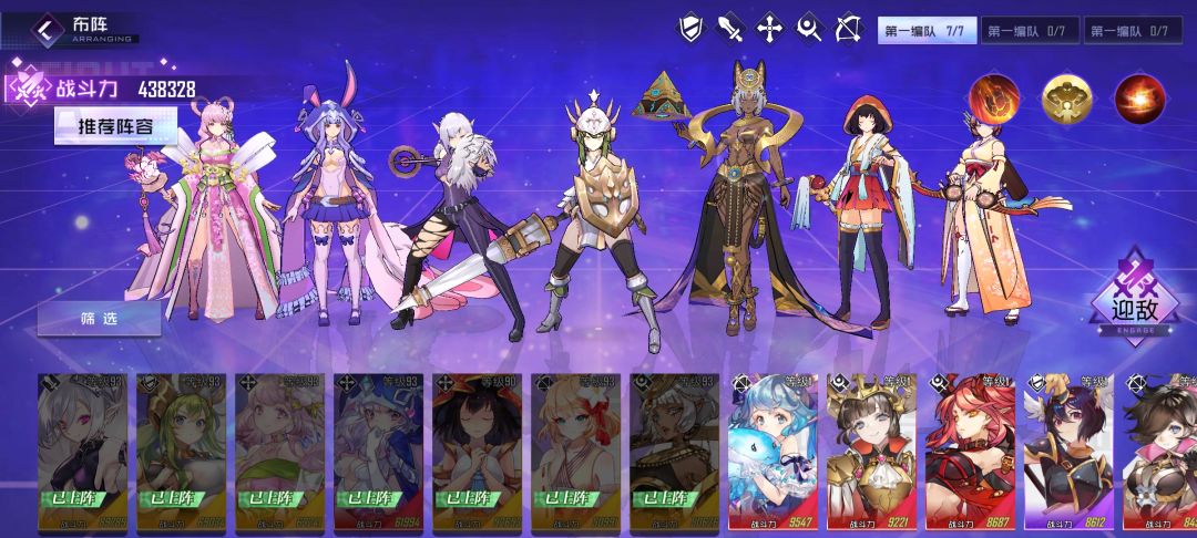 ♥ 角色划分:角色分为mr(红卡)、ur(金卡)和紫卡;建议前期优先主养一队ur卡到11星+;mr输出卡普遍比较吃特性等级,预计在中后期发力;前期资源充沛mr卡也可适当养玲花(辅助)+阿达拉(输出)+UP路西法(肉盾)~