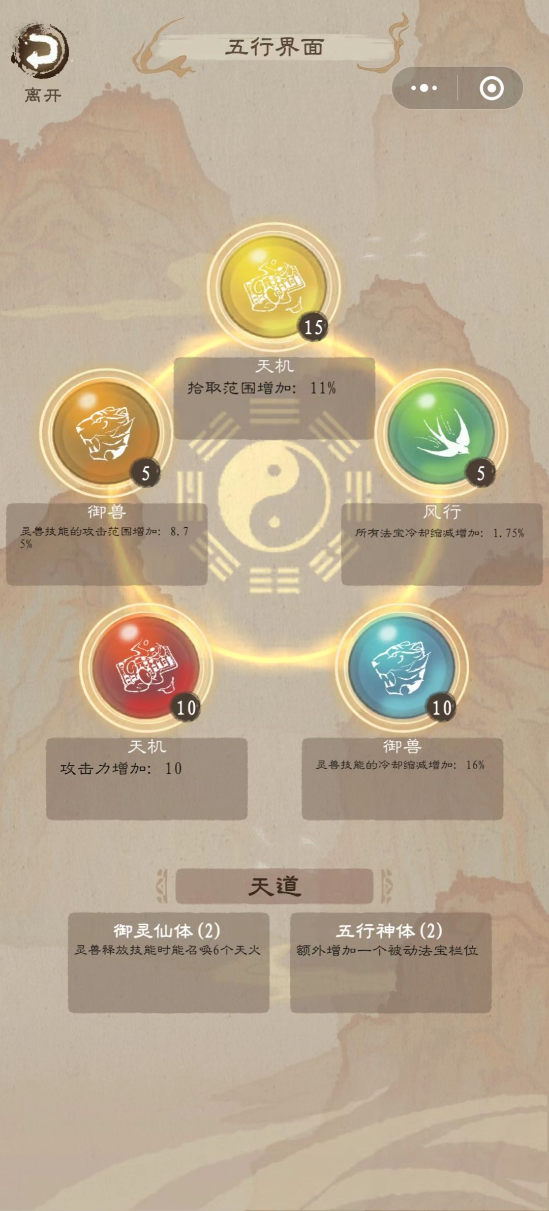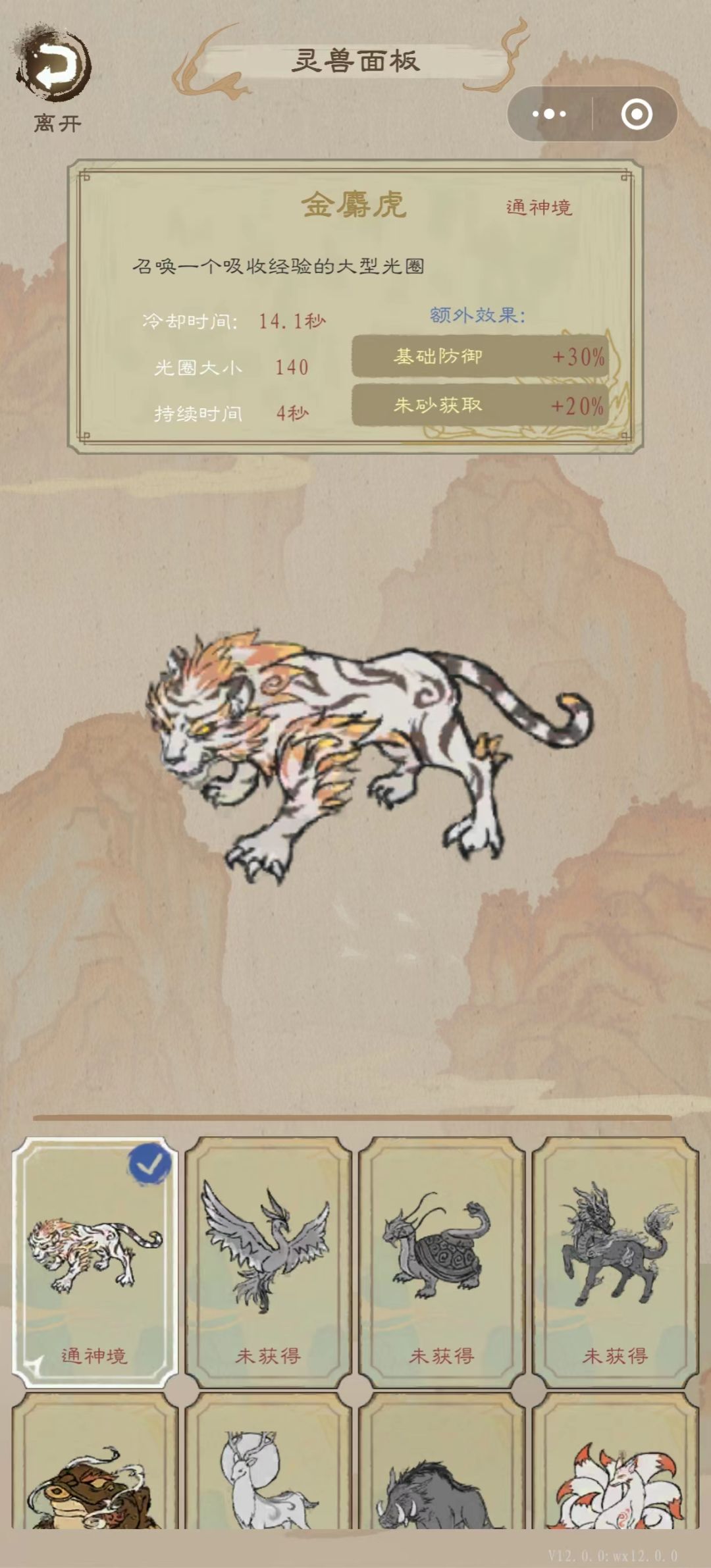 初始灵兽直接金麝虎,满级后可更换为玄龟、仙狐、应龙。我一直觉得玄龟的无敌+恢复很棒,可以苟到最后。伤害靠升级选择和七杀加成并不会差。