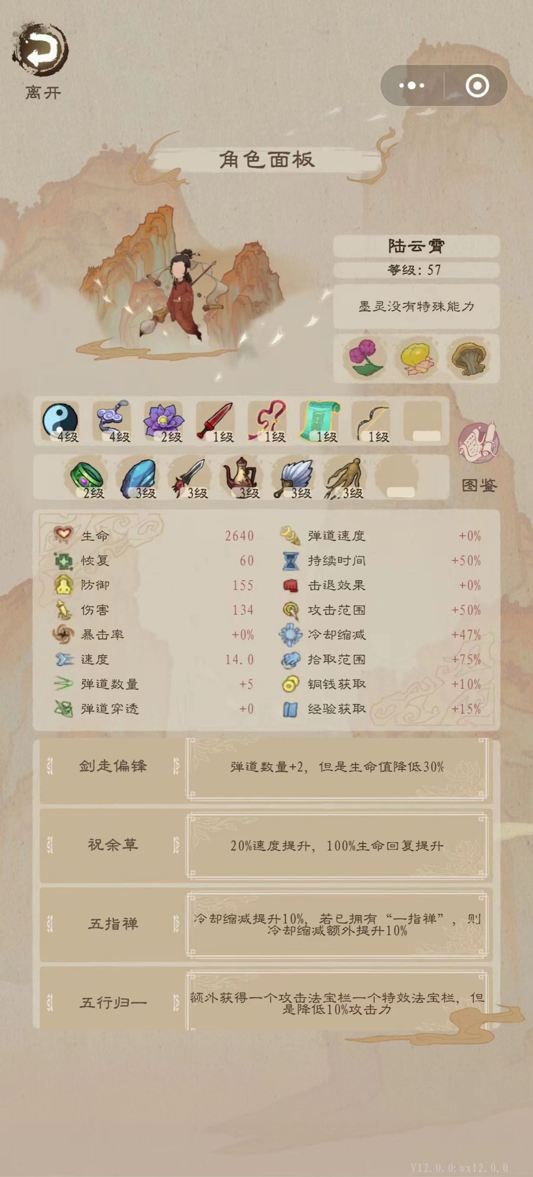 考虑攻击距离、伤害和搭配问题,金刚符、翻羽拂尘、碧瑶笛、凤凰血、青霜戒被我弃用。
