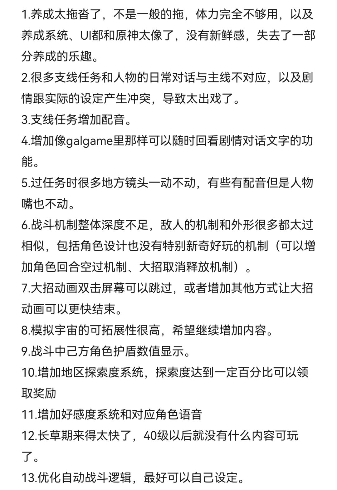 并且养成系统和原神做得如出一辙,缺失了一些新鲜感和趣味性。
