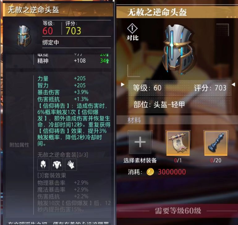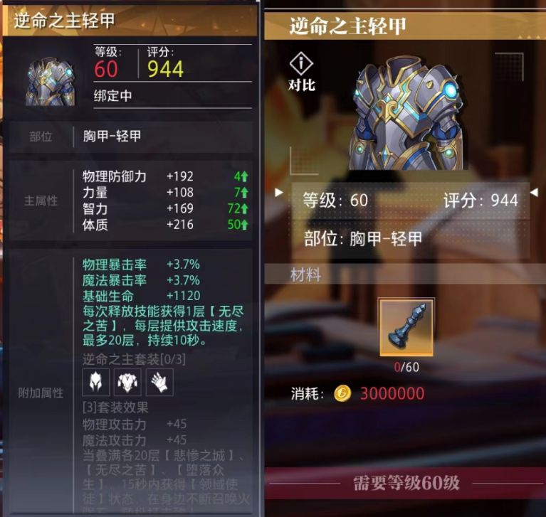 👇60 I 逆命套装:【堕落众生】释放技能叠加暴击伤害