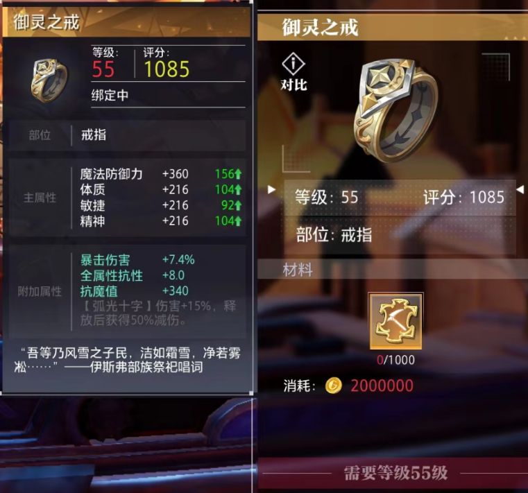 👇55 III 镰卫戒指:【弧光十字】伤害+15%减伤+50%