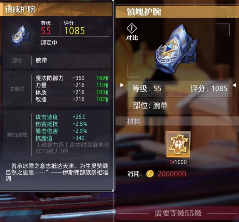 4.本阶段45级史诗防具有抗魔加成了!低配团本套装!但是!跟55粉装还是有差距。不太推荐冲强化!