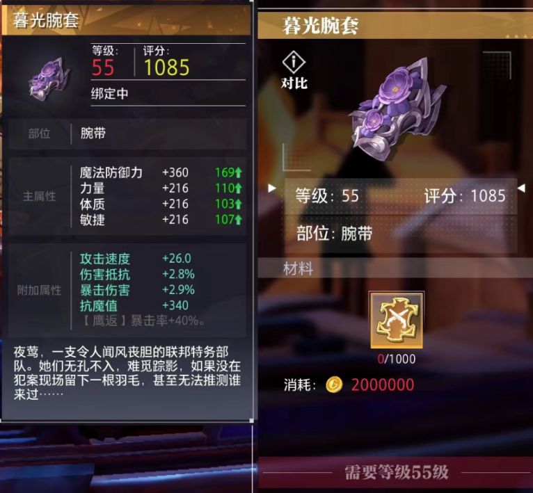 👇55 III 赏金腕带:【鹰返】暴击率+40%
