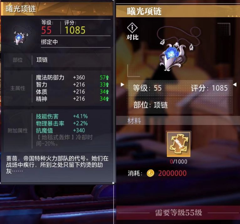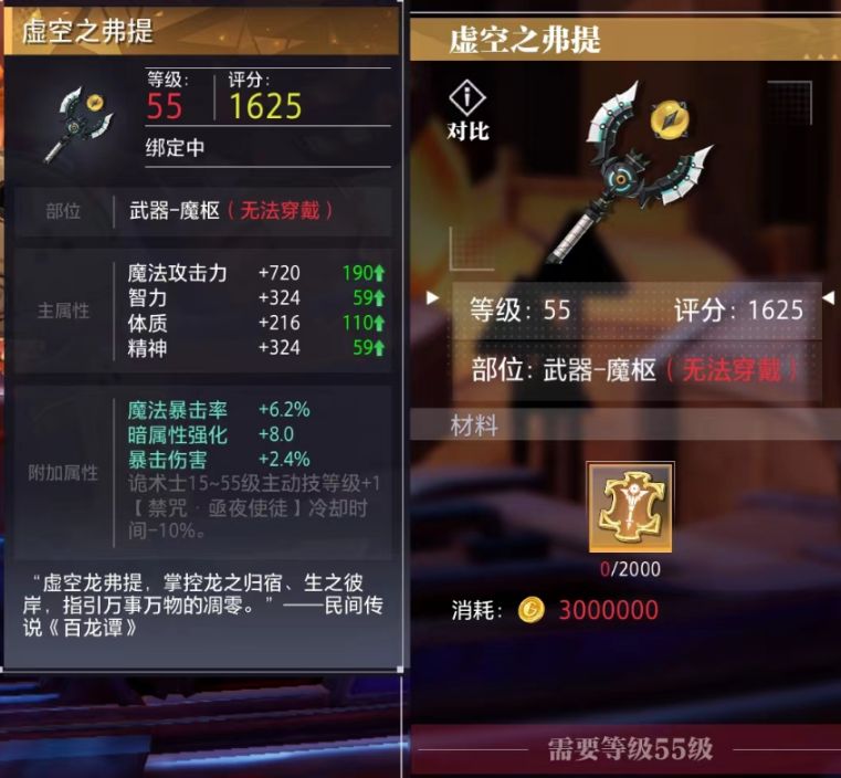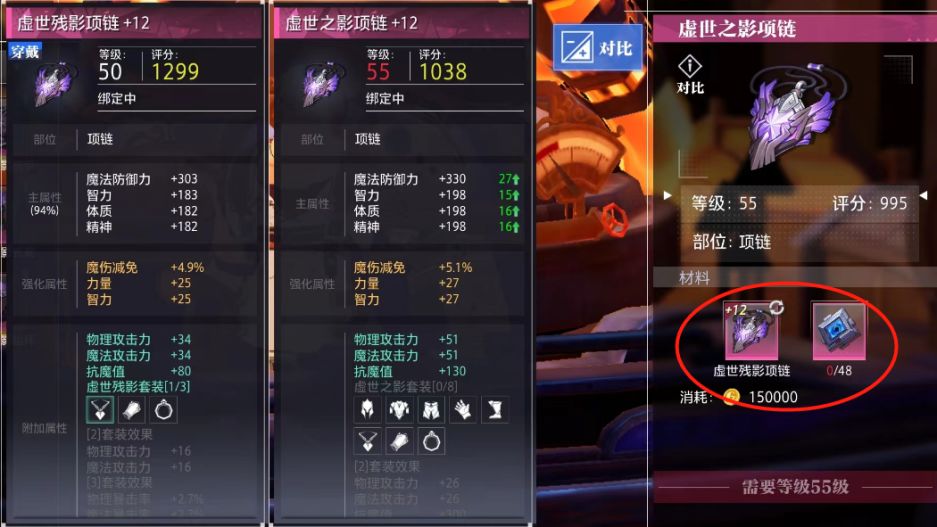 3.本阶段开放了虚空副本。每天可以兑换一个50级粉色首饰,该首饰可以升级到55级粉色,建议直接强化到10。
