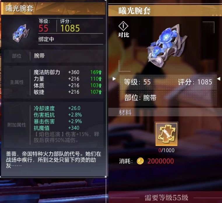 1.本阶段是最尴尬的一段过渡期,因为55粉色8件套过于强力,而55 II的史诗只有四件套以及首饰的三件套,很难凑齐一个套装属性,攒碎片的路程遥遥无期。最理想的状态就是凑齐该阶段史诗套装后再统一转移!