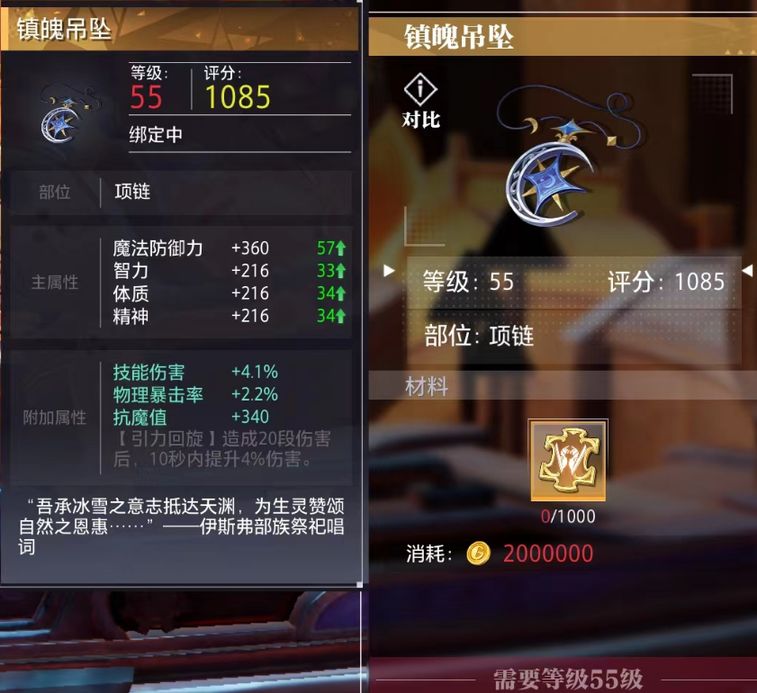 👇55 III 剑侍项链:【引力回旋】造成伤害后,10秒内提升4%伤害