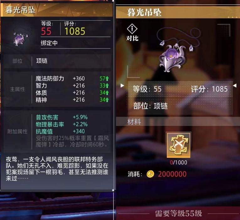 👇55 III 镰卫项链:【旋刃激跃】暴击率+40%
