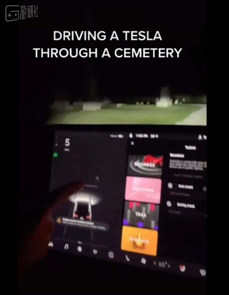 开特斯拉经过墓地,车辆识别到周围全是人