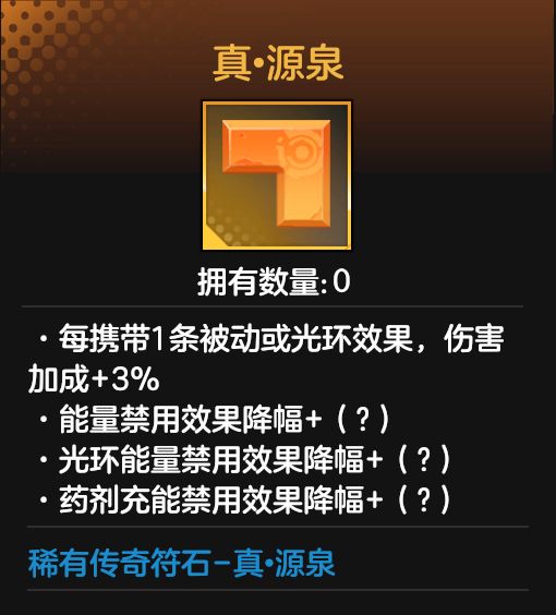 装备该符石,冒险者每携带1条「被动」或「光环」效果,伤害可获得加成;该符石还可以降低能量禁用效果,能在冒险者们使用公会光环塔时发挥不错的效果。